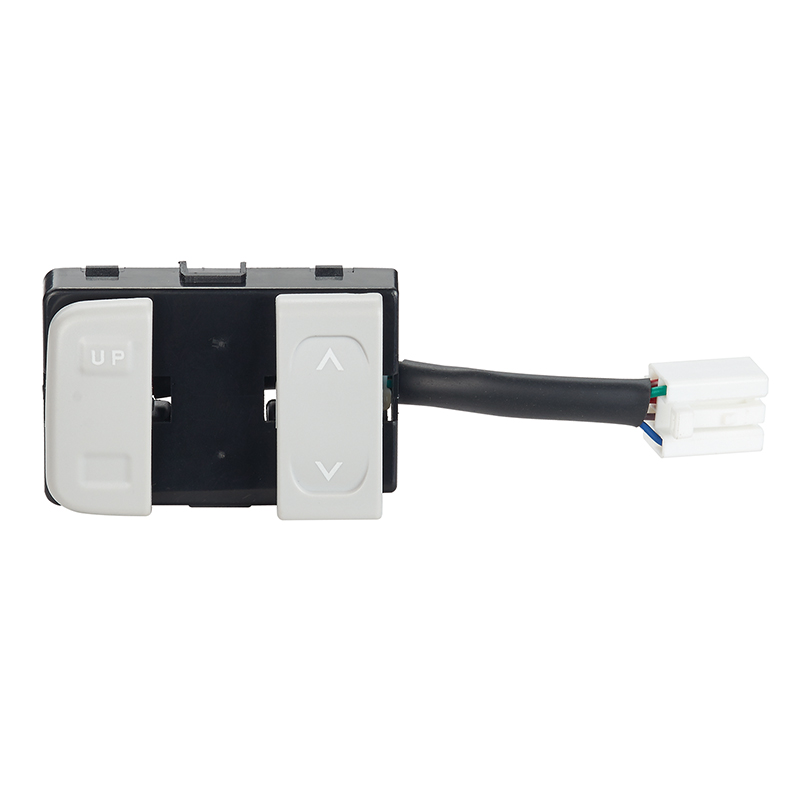 電動玻璃升降開關經過大電流設計(優點是整車成本低可以直接驅動升降電機,缺點是容易觸點拉弧燒蝕融化),發展到現在的小電流設計(通過人手操作玻璃升降器開關鉤拉按鈕的鉤拉、按壓實現升降或一鍵升降功能)只輸出開關電平信號給集控器,然后由集控器輸出控制玻璃升降電機實現玻璃升降功能。